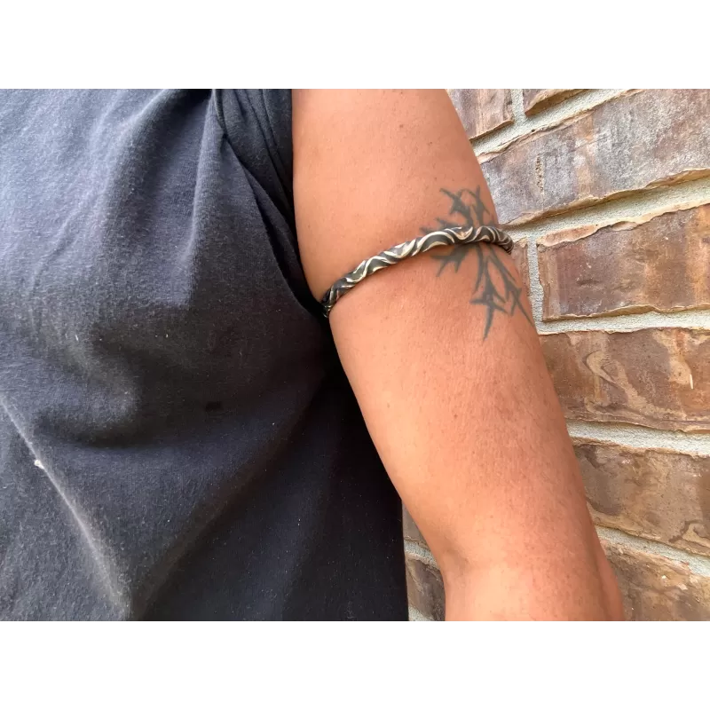 An arm ring, also known as an armlet or an armband, is a band of metal, usually a precious metal, worn as jewelry or an ornament around the biceps of the upper arm. The arm ring is similar to a bracelet or bangle, though it must be shaped and sized to fit snugly to the upper arm.